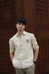BEIGE SPIRAL EMBROIDED LINEN SHIRT